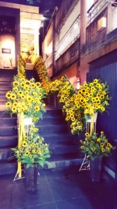 誕生日の方が向日葵が好きと言う事だったので、向日葵で階段を装花致しました。