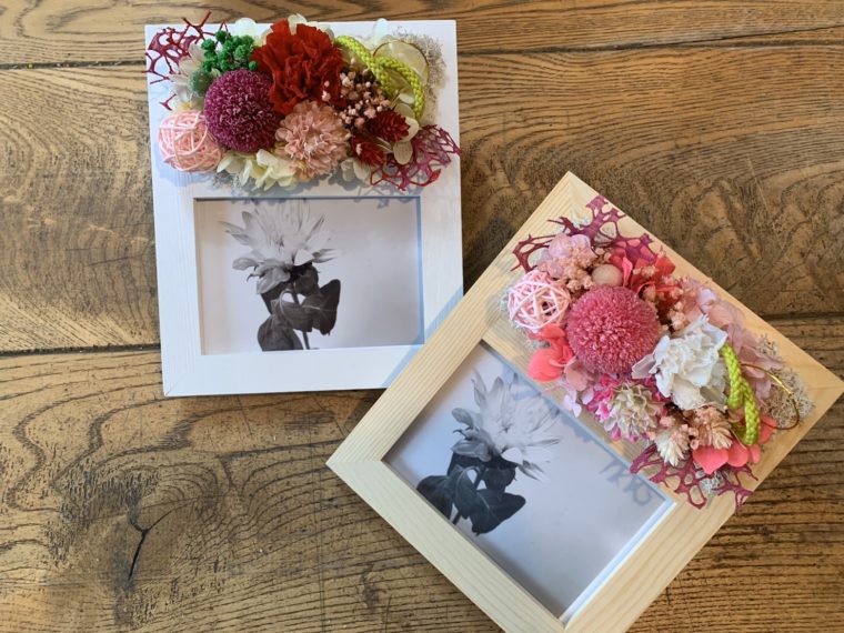 こちら、プリザーブドフラワで出来たフォトフレームなんです!