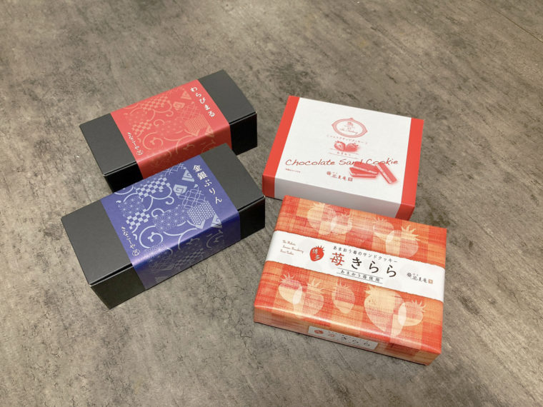 風美庵の「苺きらら」「ショコラサンドクッキー」、きなこーやの「わらびまる」「ぷりん」の