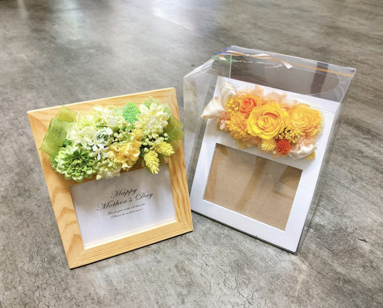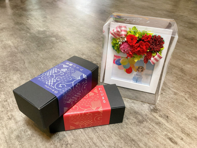 プリザーブドフラワーのフォトフレームと美味しいお菓子がセットに!