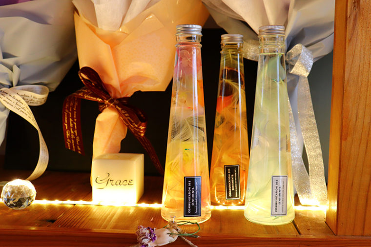 プリザーブドフラワーやドライフラワーを特殊なオイルに浸した、お手入れ不要のインテリアアイテム。