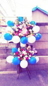 こちらがバルーンと花を一緒に活けたスタンドになります。
